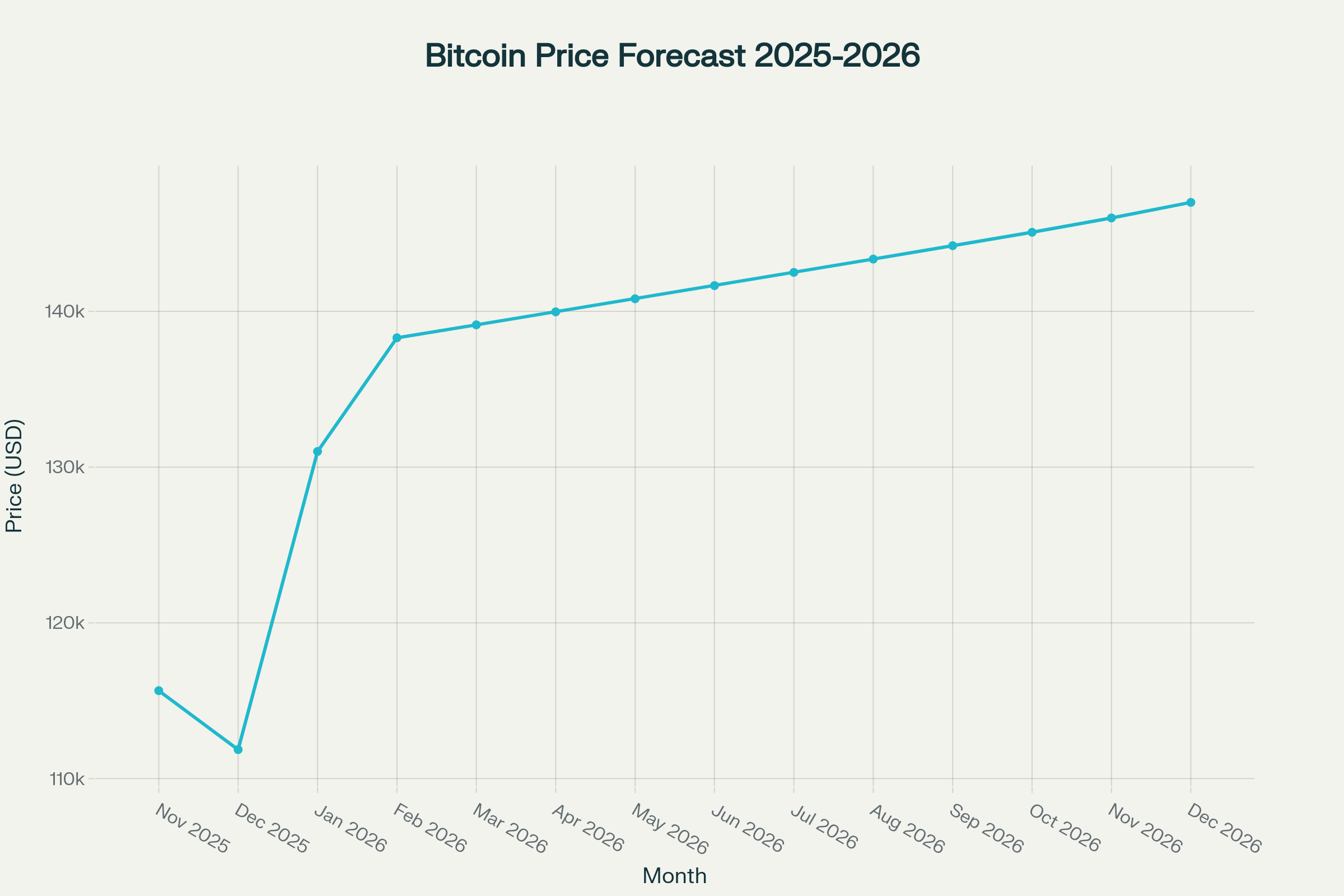 Based on expert models and historical trends, a rough monthly price forecast for Bitcoin in 2026 might look like this: